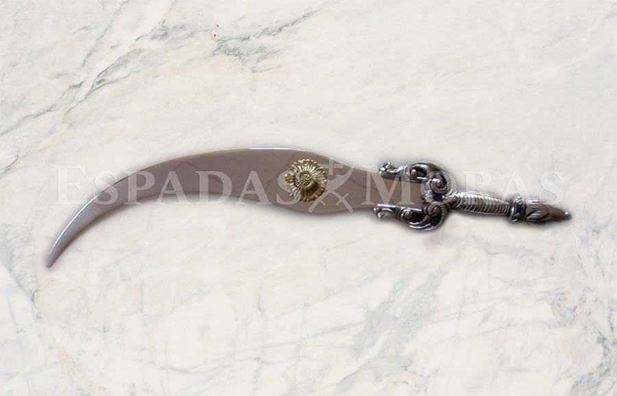 Espada para uso decorativo y en especial para usar en el desfile de las fiestas de Moros y Cristianos que debido a su poco peso y ergonomía de su empuñadura hace de ella que sea muy cómoda, pudiendo ser usada por damas y caballeros.